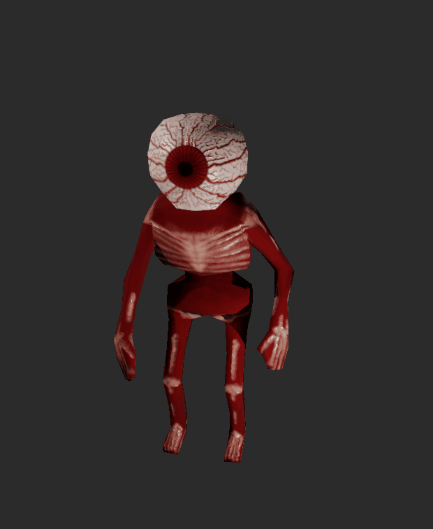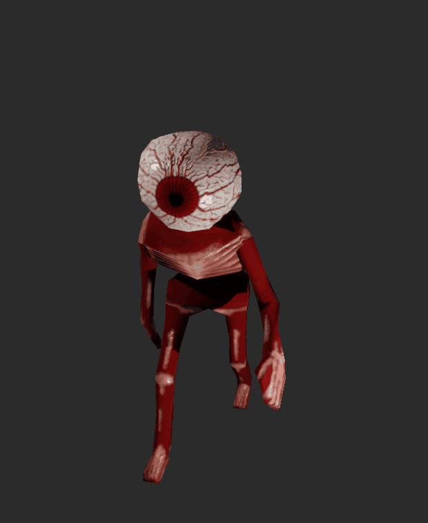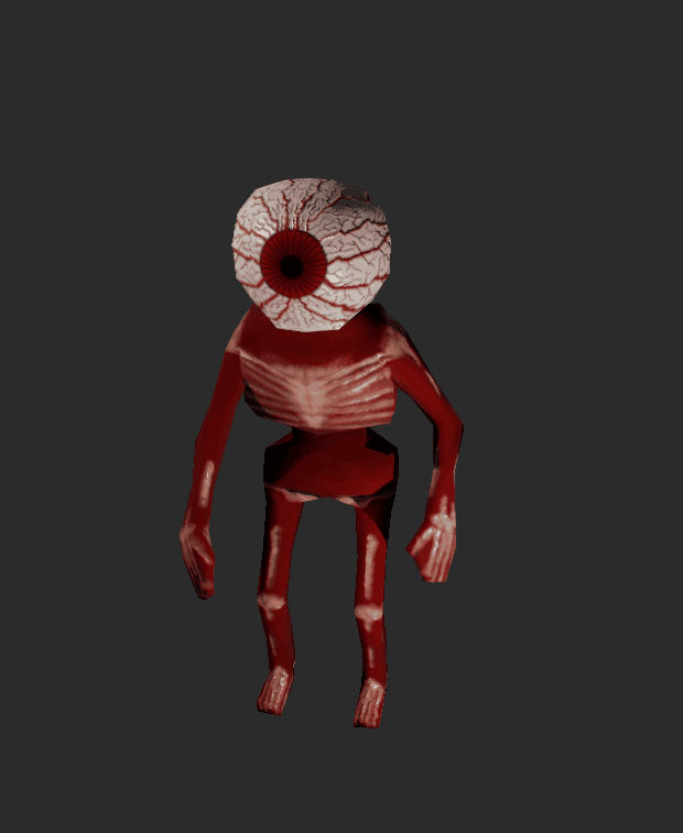 The idle pose was fairly basic. Other than the idle breathing, I also made the eye jump around erratically to add some more creepy factor to him.